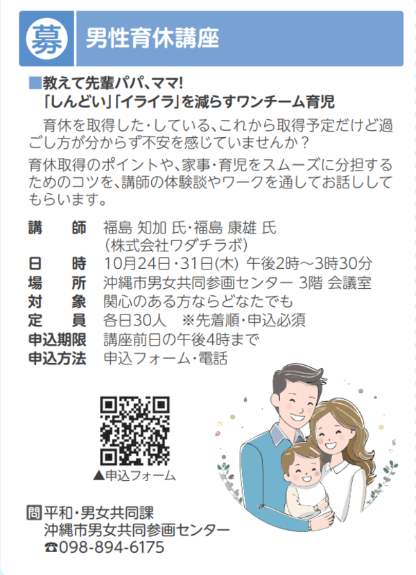 【終了】沖縄市男女共同参画センター主催 「男性育休講座」